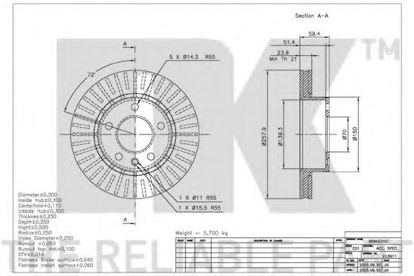 Тормозной диск NK 203611