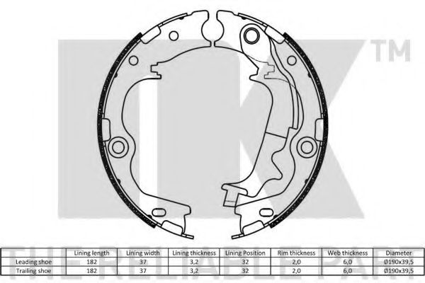 Комплект тормозных колодок, стояночная тормозная система NK 2735832