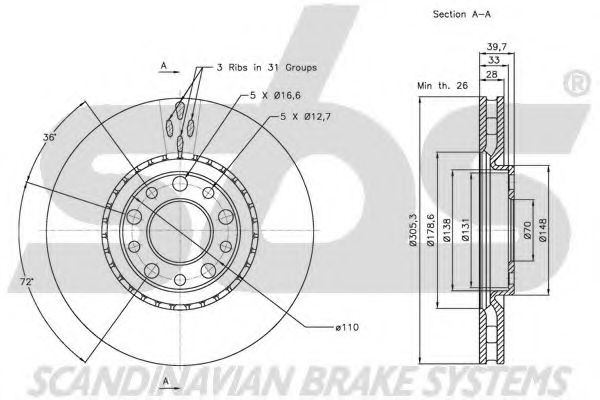 Тормозной диск sbs 1815201022